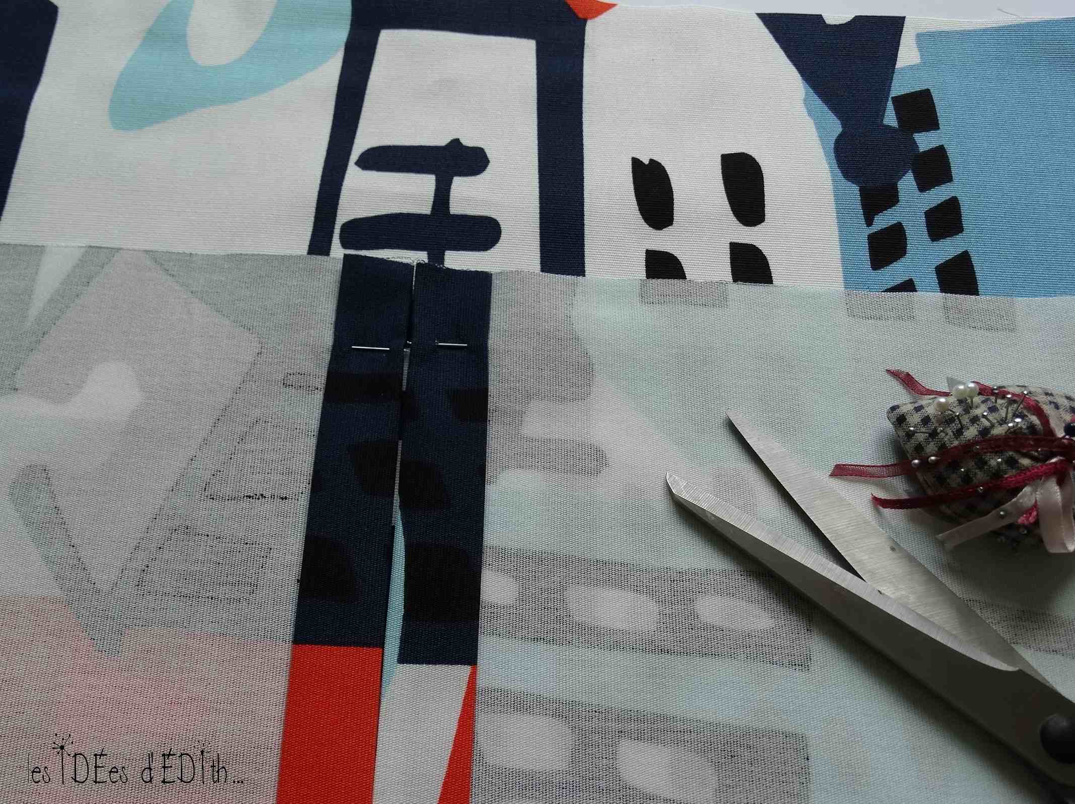 Épingler tout autour afin de maintenir les 2 carré de tissu bien superposés.
