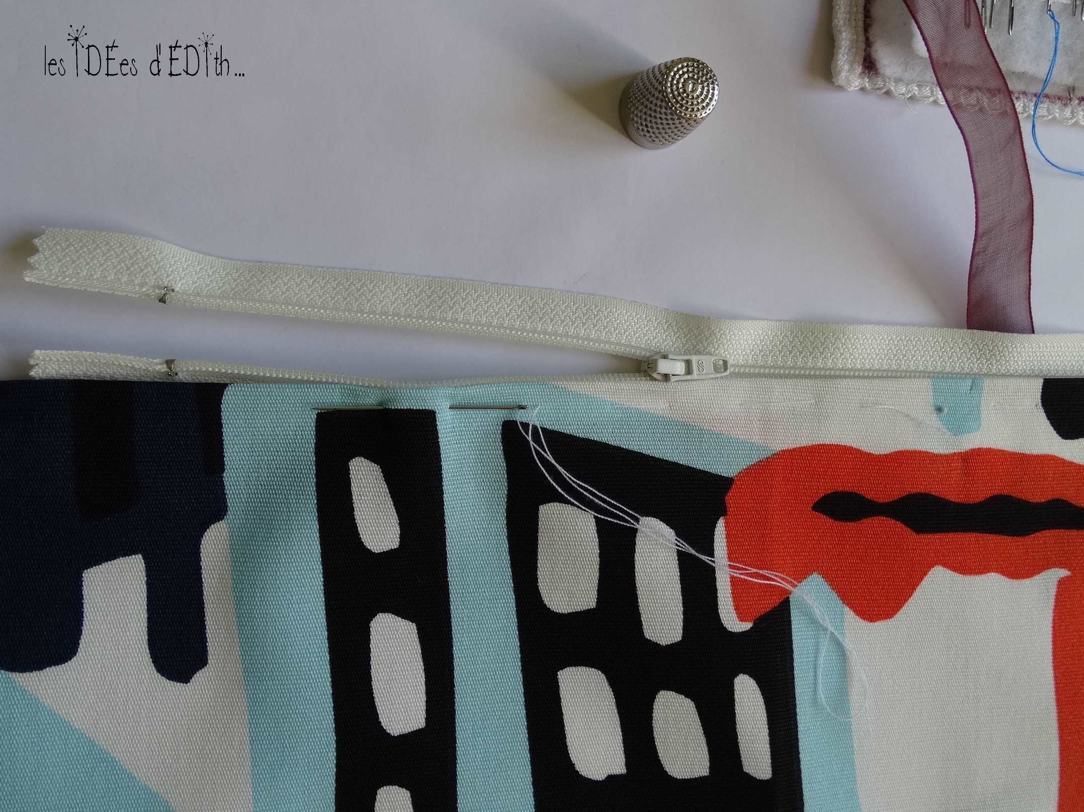- Une fermeture Éclair de 30 cm assortie au tissu