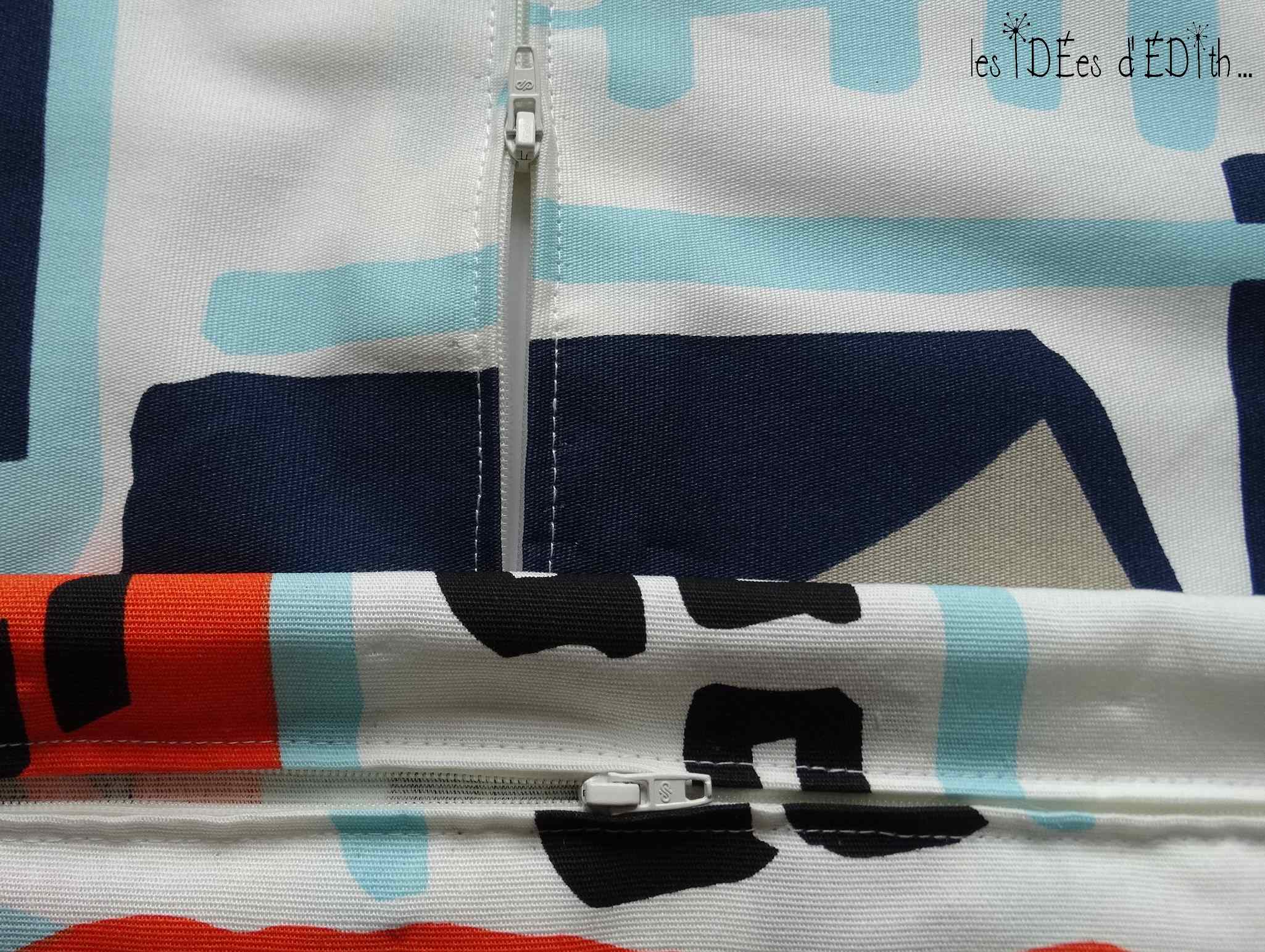 Poser le carré ainsi obtenu sur l’autre , endroit contre endroit. Ouvrir la fermeture de 10 cm.