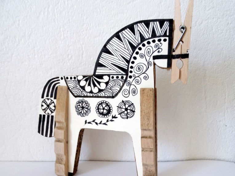 Cheval en carton et pinces à linge